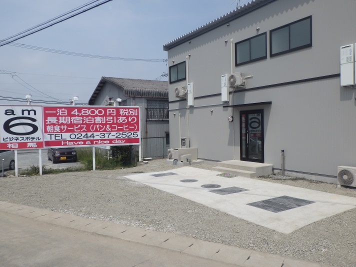 「ビジネスホテル am6」 | 約5,000円~ | 車で約5分 | 無料40台 | 2017年開業・軽朝食・無料ランドリー |